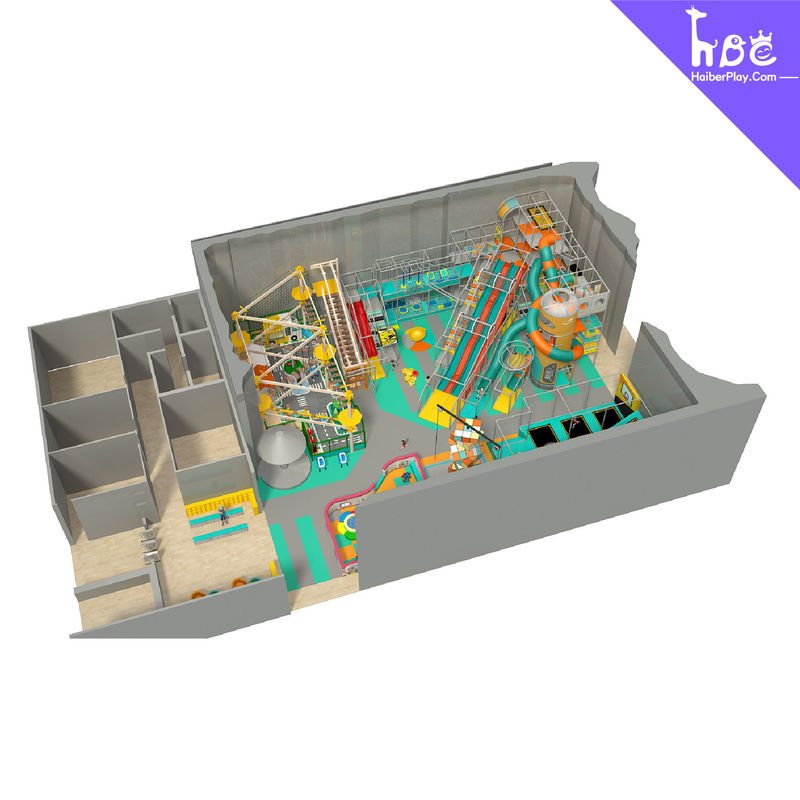 Детская игровая площадка на тему пиратского корабля, с игровой структурой в стиле непослушного замка,с деревянной текстурой и цветовыми схемами, вдохновленными пляжем и моремВ центре площадки находится огромный пиратский корабль с мягкими подушками, дополненный зонами для занятий ниндзя и спиральными горками.Все работают вместе, чтобы воссоздать атмосферу пиратского рая на пляже..